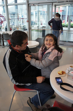 Tras este largo paseo llegaría la hora de tomarnos un buen tentempié  con nuestra sobrina y divertirnos un poco por el salón y aledaños admirando todo lo que allí veíamos.